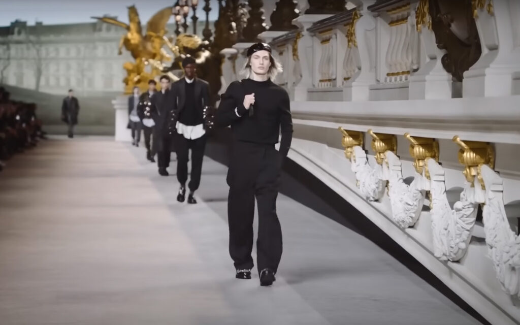 From his first day at Dior, Kim Jones elevated the house’s menswear into a realm of exceptional refinement. He drew inspiration from the founder himself, Christian Dior, seamlessly merging historical silhouettes with modern masculinity. His vision brought to life the now-iconic “oblique” suits, featuring elegant side-buttoned tailoring and rich, sculptural cuts—pure haute couture for men.